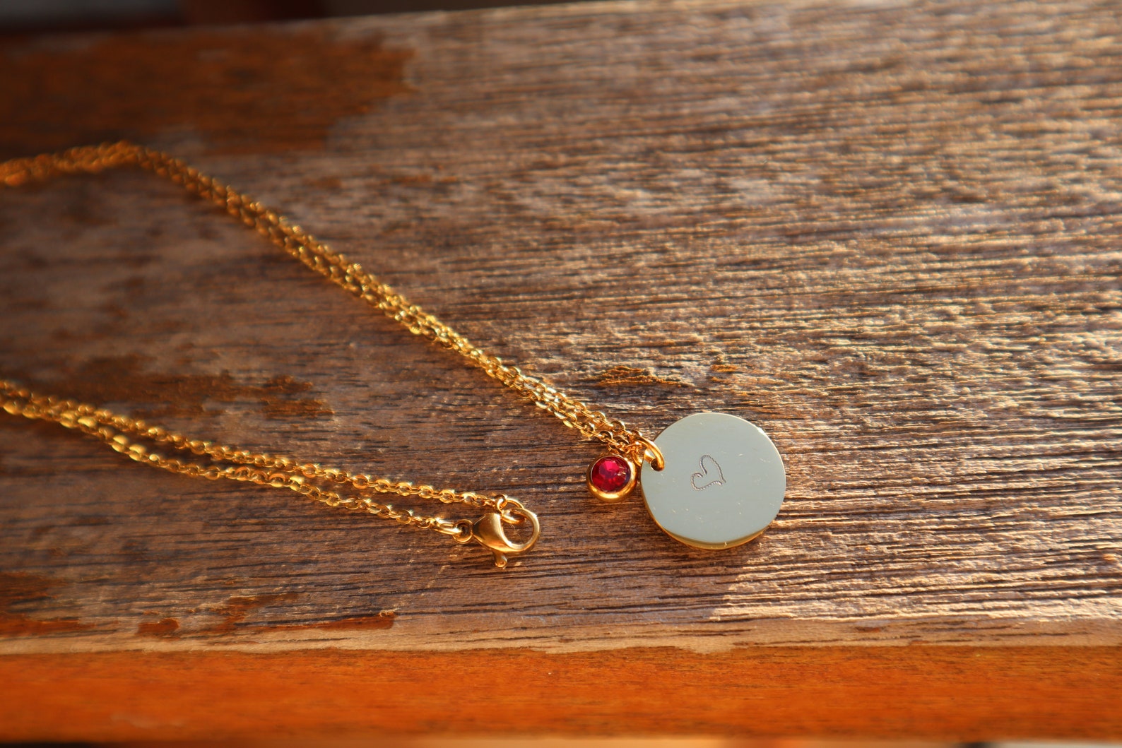 Collier Médaillon gravé à la main personnalisé avec votre pierres de naissances