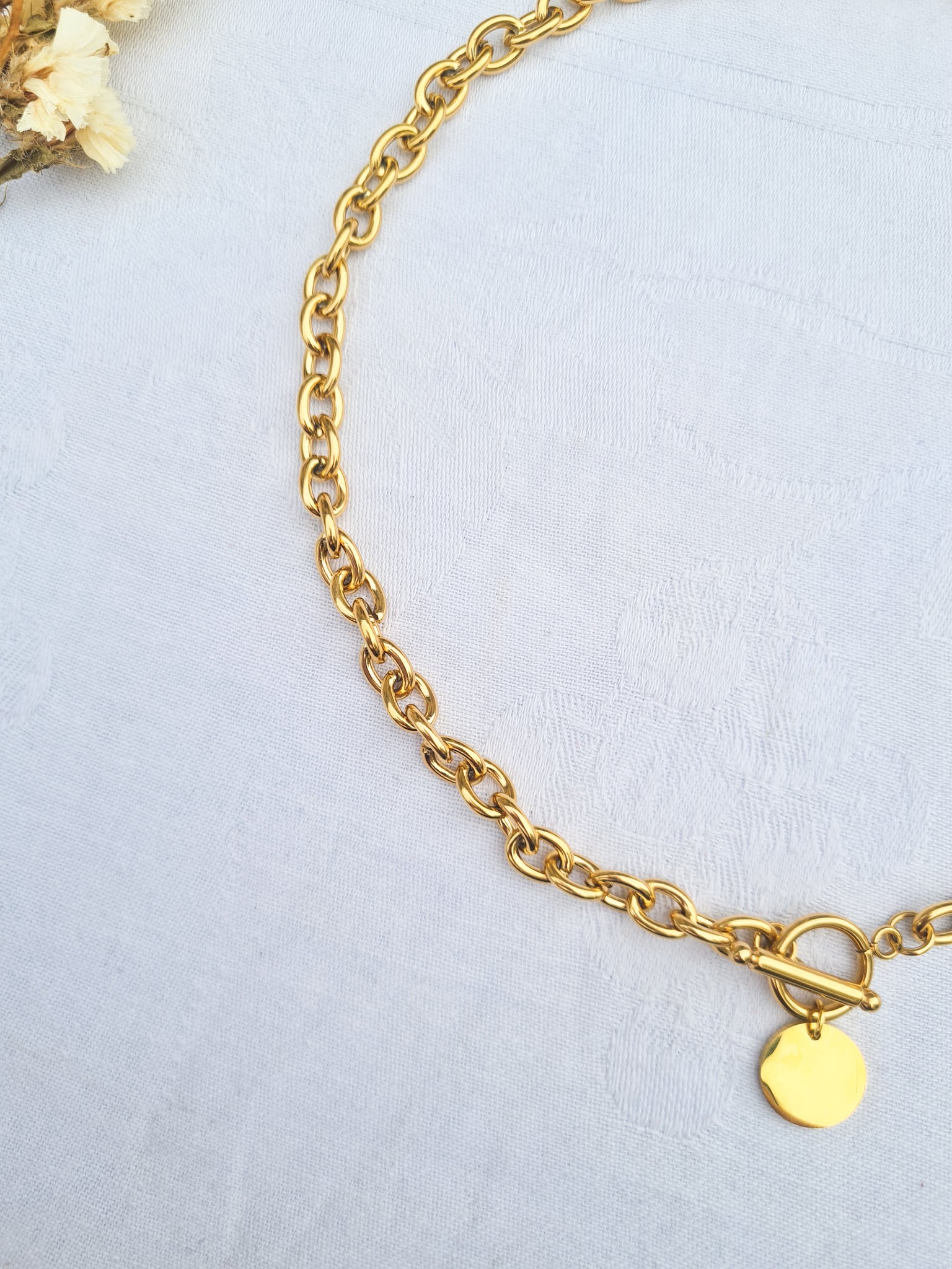 Chaine à grosses mailles avec une médaille à graver.