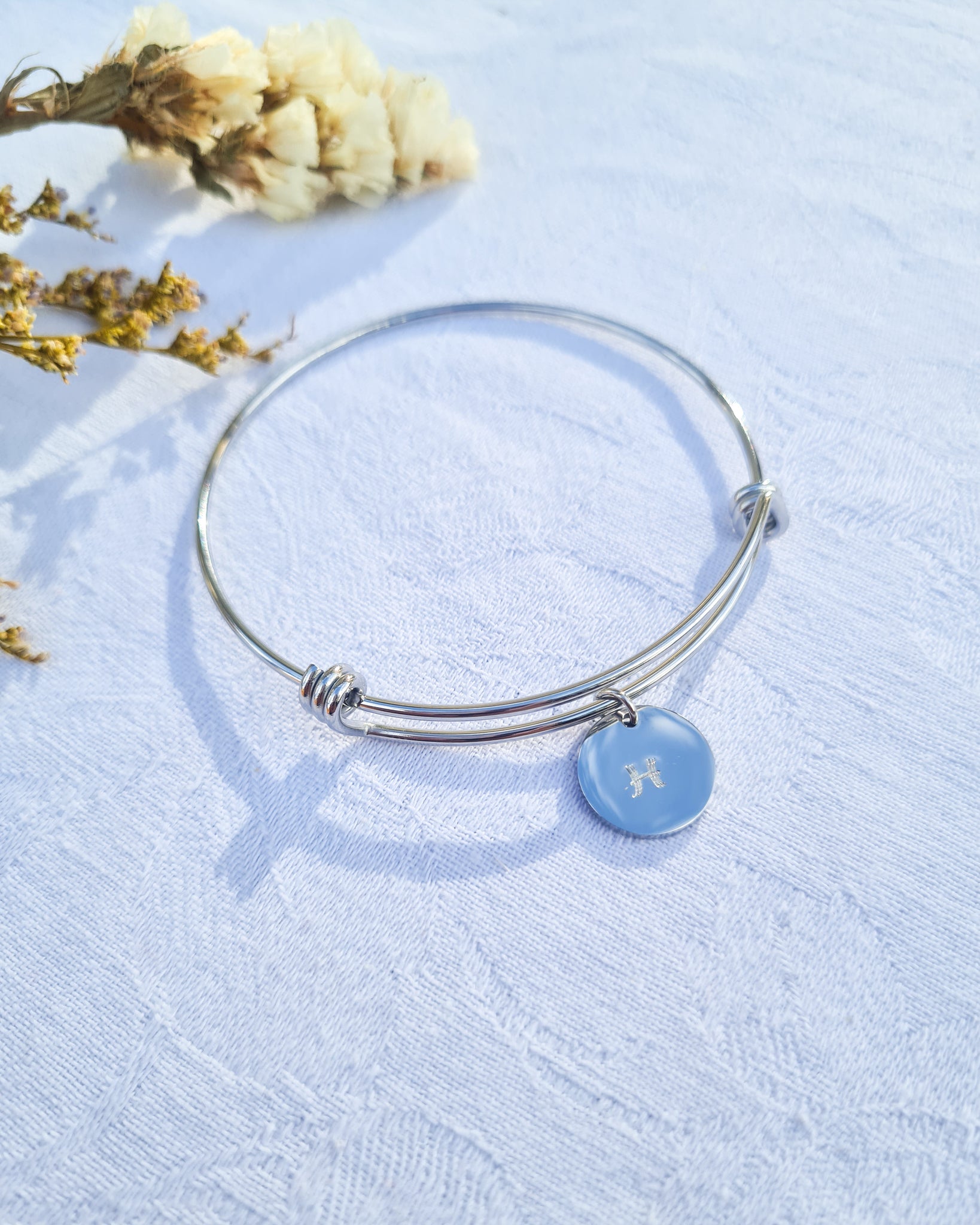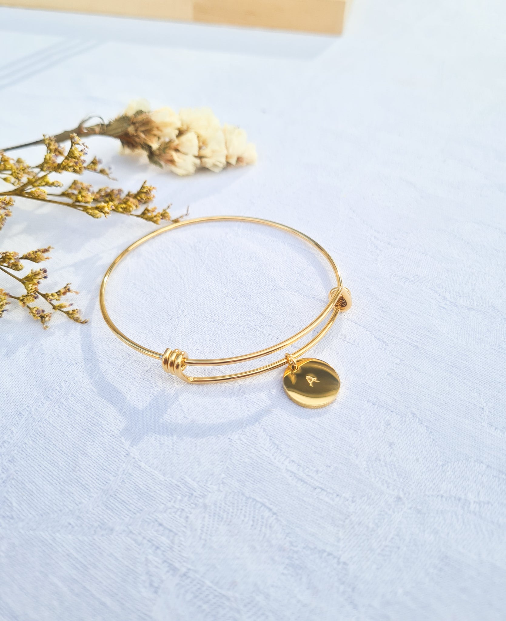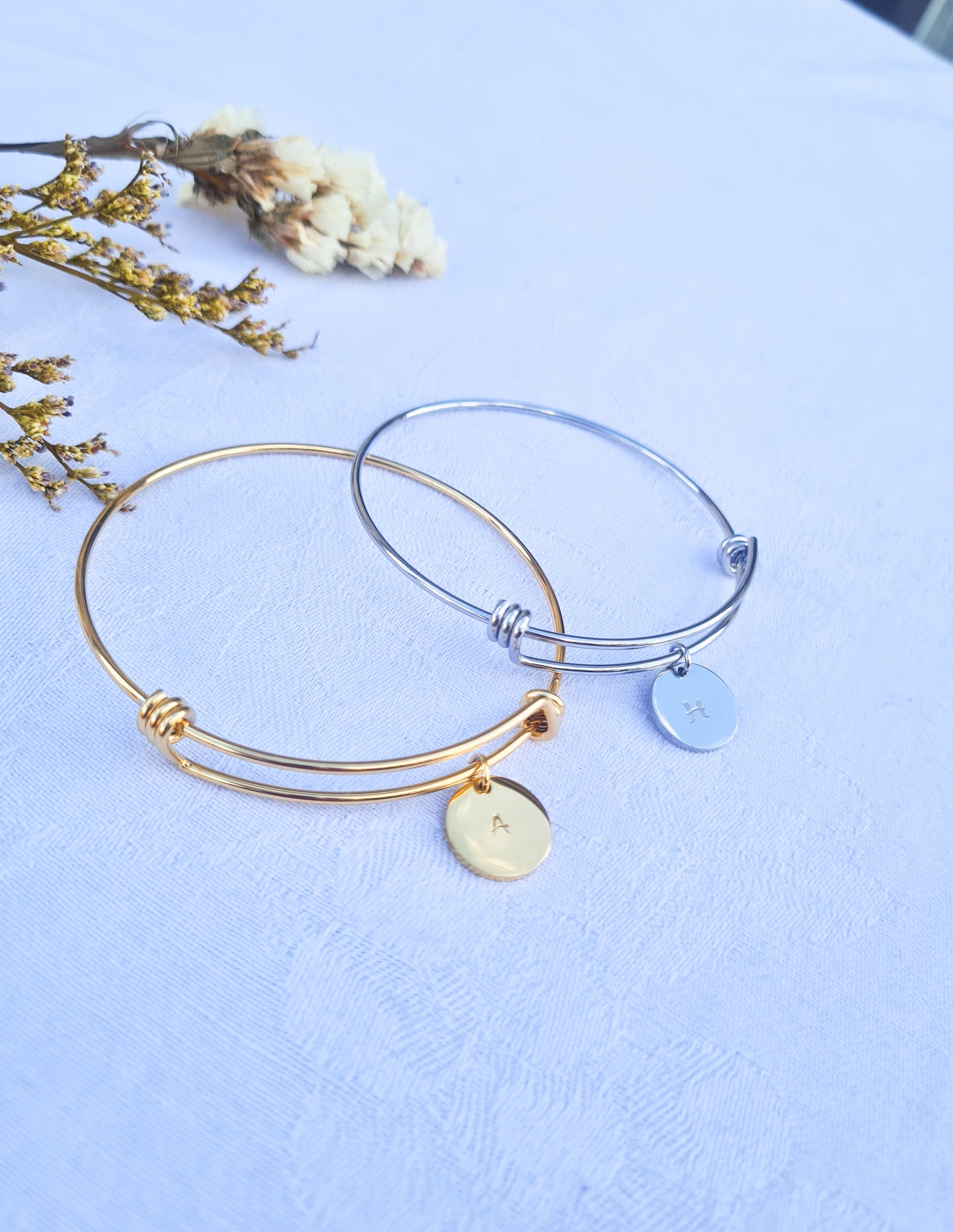 Jonc avec un médaillon en acier inoxydable à personnaliser.